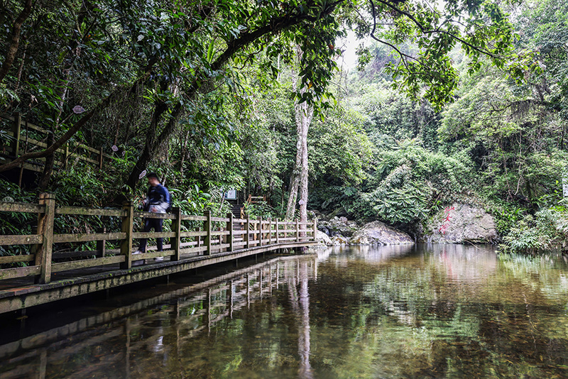 游客在海南熱帶雨林國(guó)家公園五指山片區(qū)的仙女潭游覽(2022年5月17日攝)。新華社記者 張麗蕓 攝